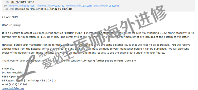 The manuscript of Dr.W was successfully published in the magazine Febs Open bio,congratulations!Doctor: Dr.WUnit: XXX Second Peoples HospitalDevision: Department of Oncology