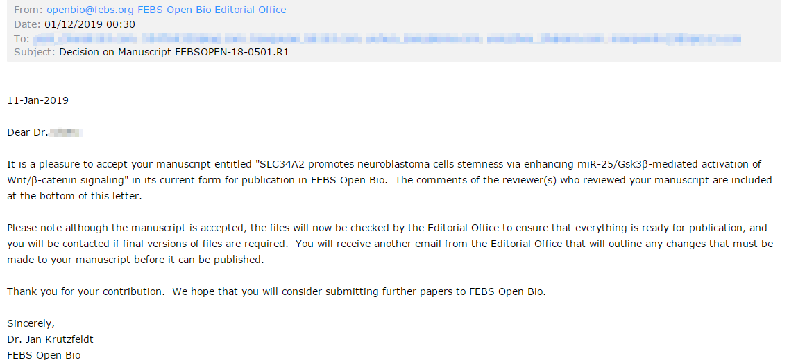 Congratulations!the manuscript of Dr.C was successfully published in the magazine Febs OpenbioDoctor: Dr.CUnit: xxx General HospitalDevision: Department of Neurosurgery